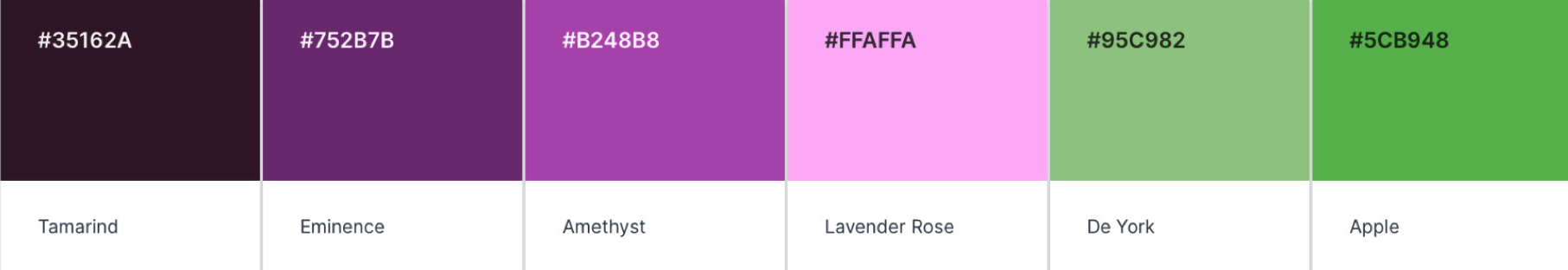 A deep plum tone that complements the lighter pinks while maintaining readability and contrast. It adds depth and maturity, keeping the design balanced and preventing it from feeling overly childish.