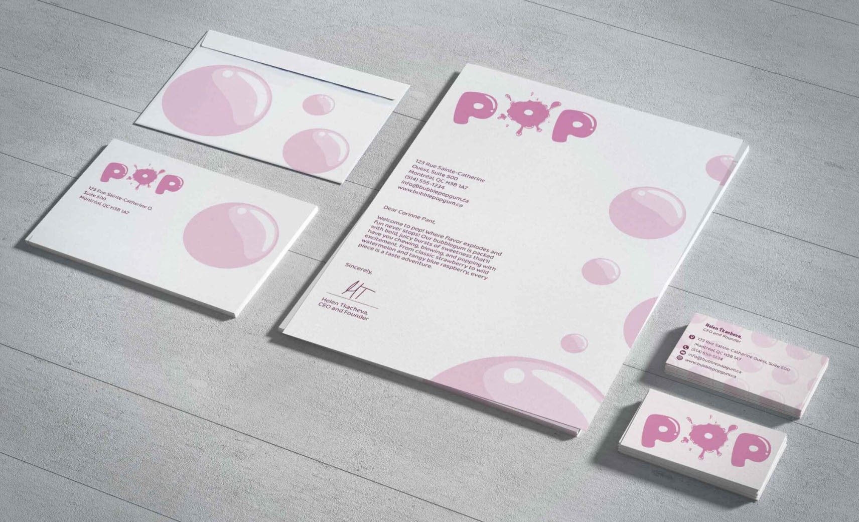 The design process focused on capturing the playful and energetic nature of the word “POP.” I explored different variations in color, form, and texture with my group to achieve a balanced and cohesive look. The final logo  features a refined pink palette, rounded typography, and a dynamic splash element integrated into the “O” effectively conveying motion and vibrancy while maintaining a playful and modern aesthetic.